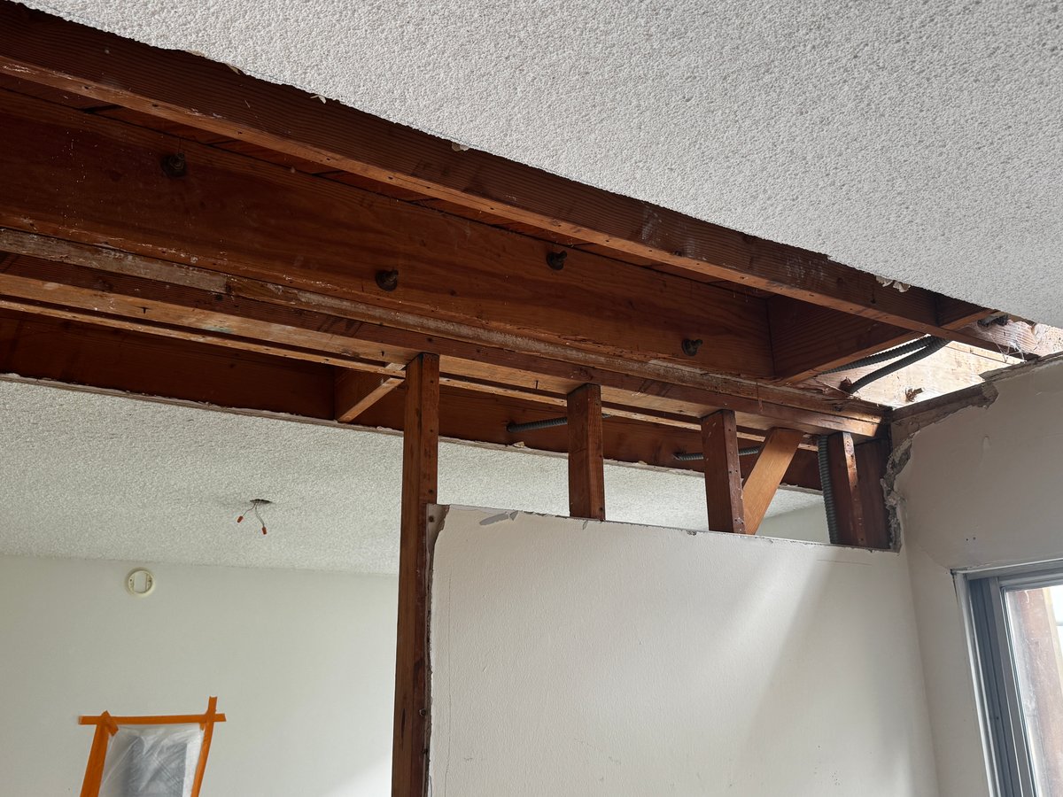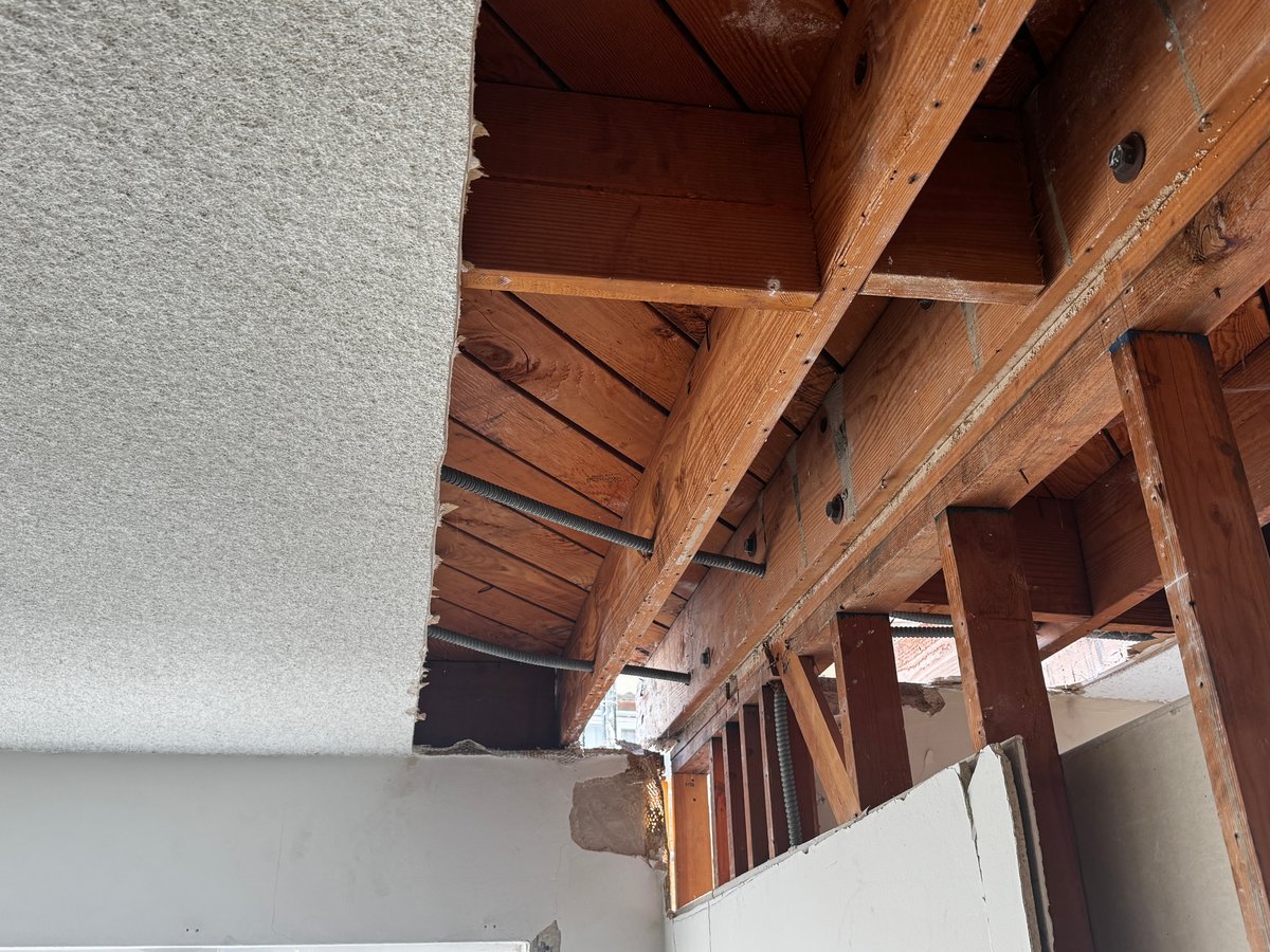When we opened up the balcony framing, the joists and beams were rotted through due to years of trapped moisture. Since these were cantilevered balconies, the damaged structural members extended into the building’s interior, requiring careful demolition and reconstruction.